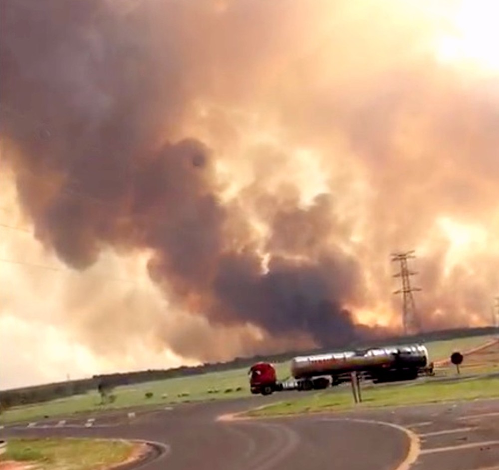 Equipes de várias usinas de cana-de-açúcar da região de Quatá (SP) passaram o dia nesta quarta-feira (30) tentando controlar um grande incêndio que começou na terça-feira (29) em um canavial às margens da Rodovia Manilio Gobbi (SP-284).