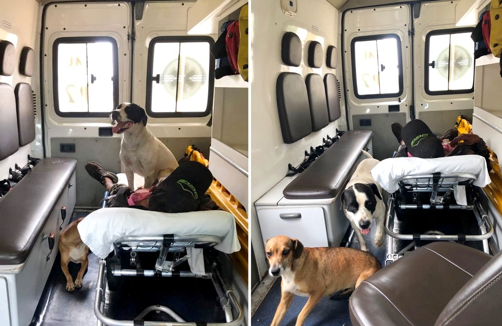Cães ‘invadem’ ambulância do Samu para acompanhar dono e fazem vigília na madrugada em Bauru — Foto: Arquivo pessoal